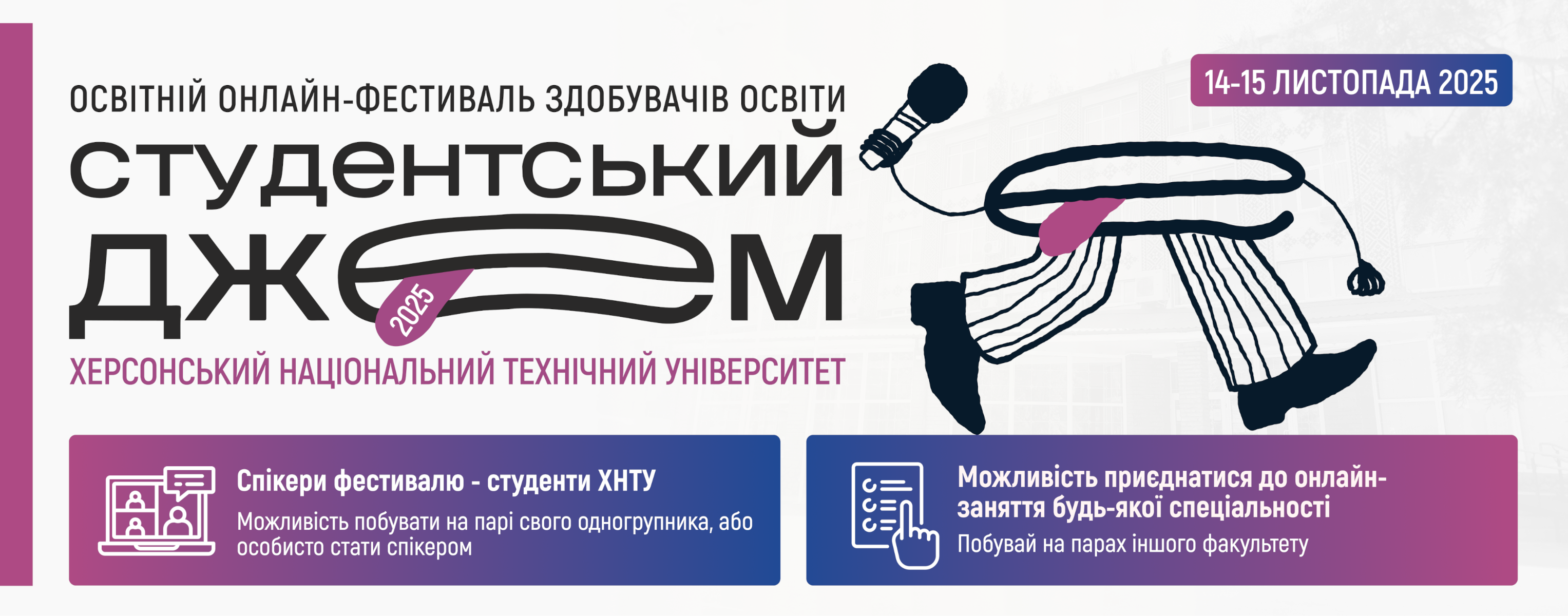 Кафедра Хімічних технологій, експертизи та безпеки харчової продукції Херсонського національного технічного університету запрошує до участі у ХІІ Всеукраїнській науково-практичній конференції «Науково-практичні розробки молодих учених в хімічній, харчовій та парфумерно-косметичній галузях промисловості», яка відбудеться 21 листопада 2025 р.