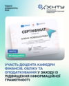 УЧАСТЬ ДОЦЕНТА КАФЕДРИ ФІНАНСІВ, ОБЛІКУ ТА ОПОДАТКУВАННЯ У ЗАХОДІ ІЗ ПІДВИЩЕННЯ ІНФОРМАЦІЙНОЇ ГРАМОТНОСТІ