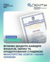 ВІТАЄМО ДОЦЕНТА КАФЕДРИ ФІНАНСІВ, ОБЛІКУ ТА ОПОДАТКУВАННЯ З ПОДЯКОЮ МІНІСТЕРСТВА ОСВІТИ І НАУКИ УКРАЇНИ!