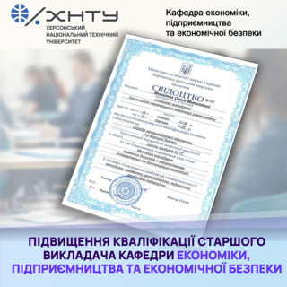 About University / Новини університету / ПІДВИЩЕННЯ КВАЛІФІКАЦІЇ СТАРШОГО ВИКЛАДАЧА КАФЕДРИ ЕКОНОМІКИ, ПІДПРИЄМНИЦТВА ТА ЕКОНОМІЧНОЇ БЕЗПЕКИ
