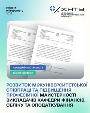 Кафедра фінансів, обліку та оподаткування висловлює щиру подяку керівництву Херсонського національного технічного університету та Університету Григорія Сковороди в Переяславі за створення умов для реалізації професійного потенціалу викладачів кафедри та організацію підвищення їхньої кваліфікації! Така співпраця є важливим кроком у розвитку академічної мобільності, професійного зростання науково-педагогічних працівників та підвищення якості освітнього процесу.