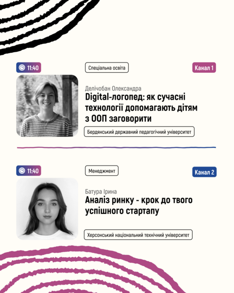 11:40🔵Канал 1: Делічобан Олександра "Digital-логопед: як сучасні технології допомагають дітям з ООП заговорити"