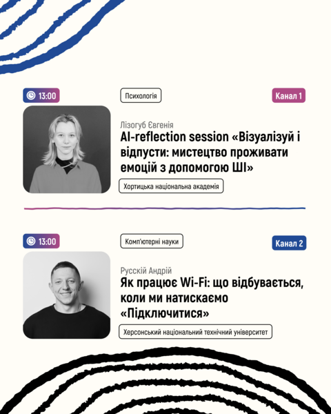 13:00🔵Канал 1: Лізогуб Євгенія "AI-reflection session «Візуалізуй і відпусти: мистецтво проживати емоцій з допомогою ШІ»"