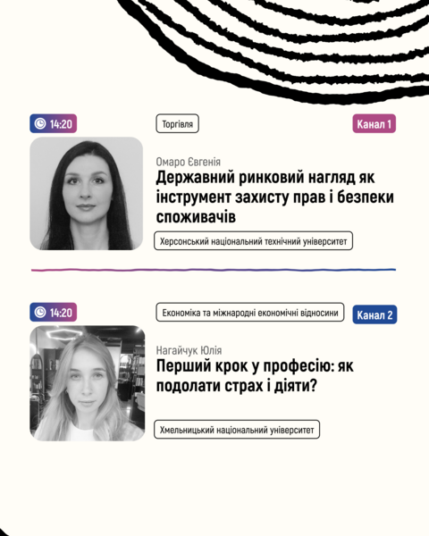 14:20🔵Канал 1: Омаро Євгенія "Державний ринковий нагляд як інструмент захисту прав і безпеки споживачів"