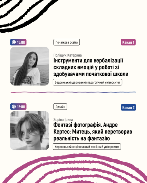 15:00🔵Канал 1: Поліщук Катерина "Інструменти для вербалізації складних емоцій у роботі зі здобувачами початкової школи"