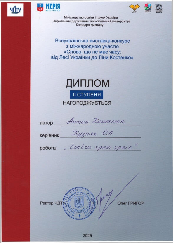11 березня 2026 року в Центрі надання адміністративних послуг міста Черкаси відбулося відкриття виставки плакатів «Слово, що не має часу: від Лесі Українки до Ліни Костенко». Захід став результатом культурно-мистецького проєкту кафедр дизайну та української мови і загального мовознавства Черкаського державного технологічного університету.