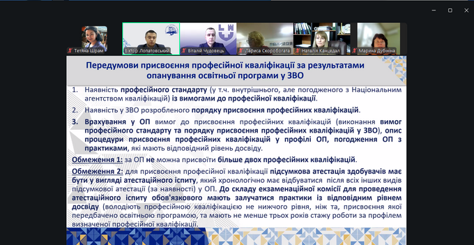 У фокусі обговорення був досвід ХНУ щодо присвоєння професійних кваліфікацій. Захід відбувся в онлайн-форматі (Zoom-конференція) та об’єднав представників багатьох закладів вищої освіти України, які здійснюють підготовку фахівців у сфері обліку, аудиту та оподаткування.