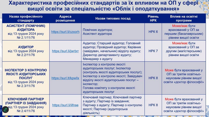 Ключовим спікером круглого столу виступив проректор з науково-педагогічної роботи, доцент кафедри обліку, аудиту та оподаткування Хмельницького національного університету Віктор ЛОПАТОВСЬКИЙ. У своїй ґрунтовній доповіді він представив всебічний аналіз сучасного стану нормативно-правового забезпечення присвоєння професійних кваліфікацій зі спеціальності D1 «Облік та оподаткування», детально зупинившись на існуючих професійних стандартах, їх безпосередньому впливі на формування змісту освітніх програм та практичних механізмах інтеграції цих стандартів у освітні програми.