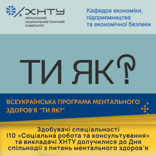 About University / Новини університету / ЗДОБУВАЧІ СПЕЦІАЛЬНОСТІ І10 «СОЦІАЛЬНА РОБОТА ТА КОНСУЛЬТУВАННЯ» ТА ВИКЛАДАЧІ ХНТУ ДОЛУЧИЛИСЯ ДО ДНЯ СПІЛЬНОДІЇ З ПИТАНЬ МЕНТАЛЬНОГО ЗДОРОВ’Я |