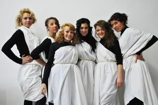 Цікавою та несподіваною була церемонія відкриття виставки завдяки ініціативі Студентського театру мод. Дівчата-моделі переодягнені в давньогрецьких муз по черзі знімали полотна, якими були накриті картини, символізуючи собою та своєю дією натхнення, що приходить до митця, відкриває його очі, зриває тінь сумніву та припиняє безрезультатні творчі пошуки.