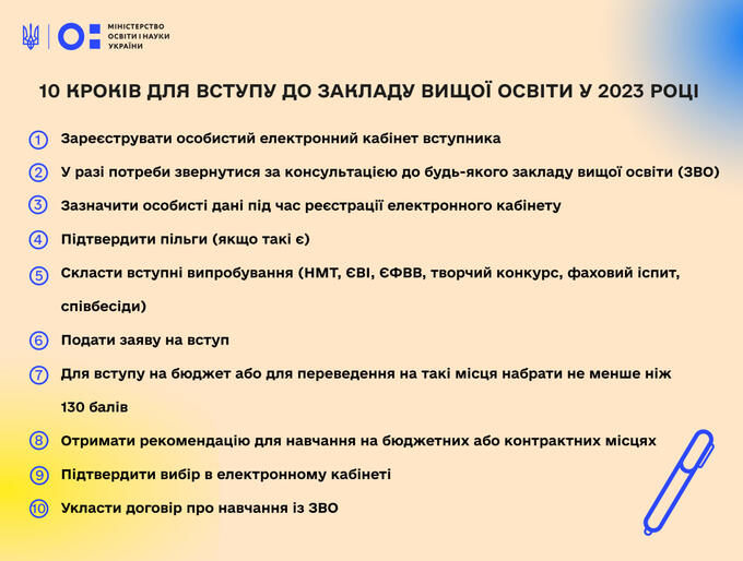 / 10 КРОКІВ ДЛЯ ВСТУПУ ДО ЗАКЛАДУ ВИЩОЇ ОСВІТИ У 2023 РОЦІ.