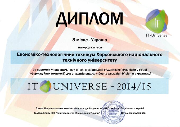 Відокремлений структурний підрозділ "Економіко-технологічний фаховий коледж Херсонського національного технічного університету"