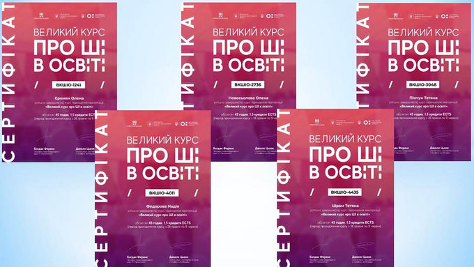 Після завершення навчання Олена ЄРЕМЯН, Олена НОВОСЬОЛОВА, Тетяна ПІНЧУК, Надія ФЕДОРОВА, Тетяна ШРАМ отримали сертифікати про підвищення кваліфікації, що засвідчує успішне опанування змістовного й актуального курсу та готовність до викликів нової епохи вищої освіти.