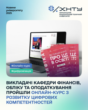 Доценти кафедри фінансів, обліку та оподаткування Олена ЄРЕМЯН, Олена НОВОСЬОЛОВА, Тетяна ПІНЧУК, Надія ФЕДОРОВА, Тетяна ШРАМ успішно пройшли онлайн-курс з розвитку цифрових компетентностей «Великий курс про ШІ в освіті» від ГО «Прогресильні» за підтримки Міністерства освіти і науки України й Міністерства цифрової трансформації України.