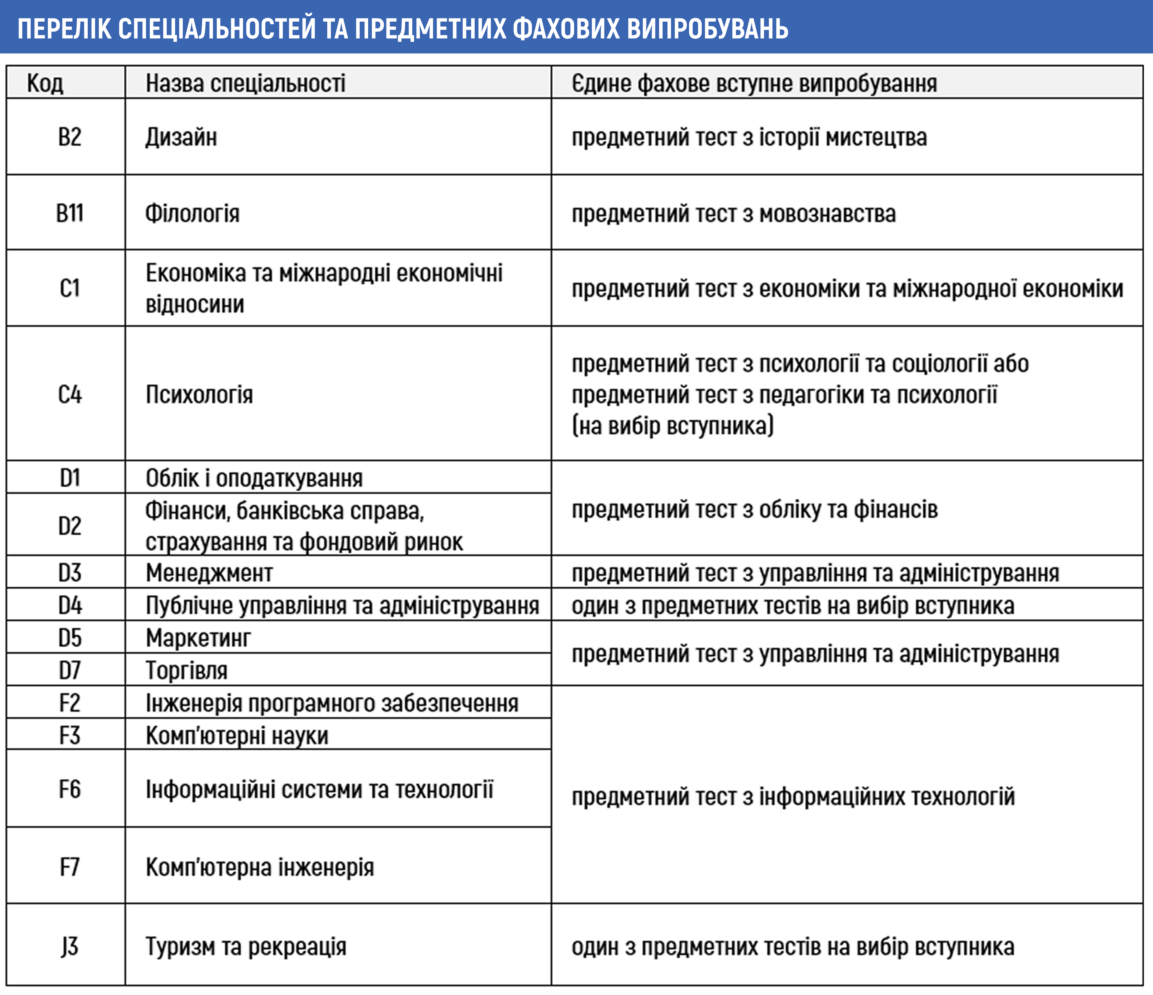 Перелік спеціальностей