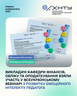 22 жовтня 2025 року викладачі кафедри фінансів, обліку та оподаткування Віра ЯКИМЧЕНКО і Тетяна ОСАДЧА взяли участь у Всеукраїнському практичному вебінарі на тему: «Роль емоційного інтелекту педагога у навчанні й викладанні в умовах цифрової освіти».