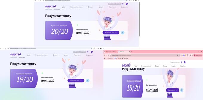 Після проходження тестування учасники заходу отримали індивідуальні рекомендації та навчальні матеріали, які допоможуть їм покращити фінансову обізнаність і сформувати навички раціонального прийняття фінансових рішень.