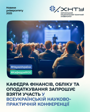 Кафедра фінансів, обліку та оподаткування Херсонського національного технічного університету запрошує взяти участь у VІ Всеукраїнській науково-практичній конференції «Формування новітньої парадигми управління публічними та приватними фінансами в Україні», що відбудеться 11 грудня 2025 року.