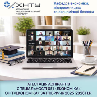 19 січня 2026 року на засіданні кафедри економіки, підприємництва та економічної безпеки, що відбулося в онлайн-форматі на платформі Zoom, аспіранти спеціальності «Економіка» звітували щодо виконання індивідуальних планів освітньо-наукової програми підготовки доктора філософії за перше півріччя 2025-2026 навчального року.