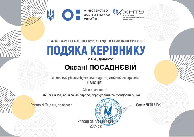 2025 Подяка Оксані ПОСАДНЄВІЙ 2025 - ІІ місце