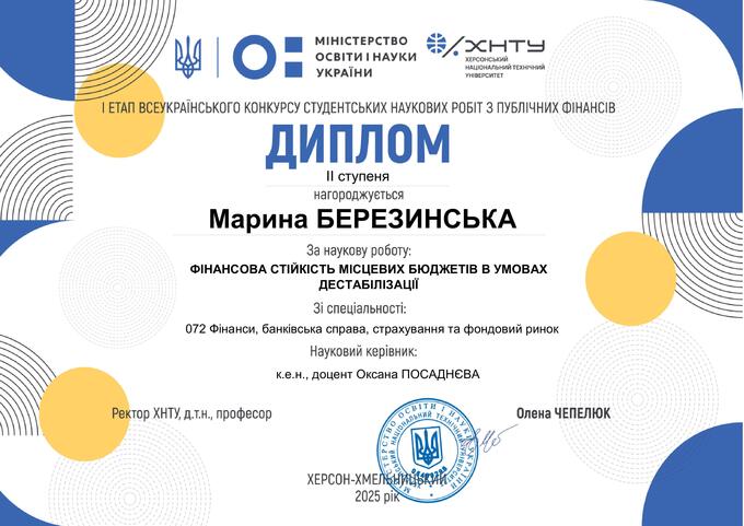 / Диплом Марина БЕРЕЗИНСЬКА