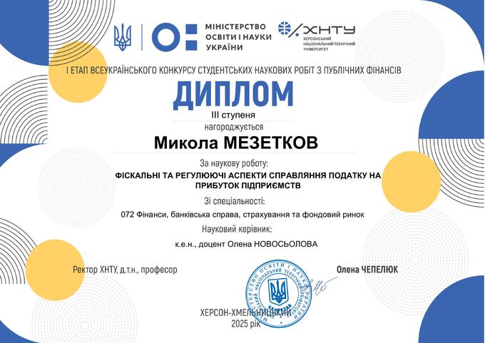 Відокремлений структурний підрозділ "Економіко-технологічний фаховий коледж Херсонського національного технічного університету"