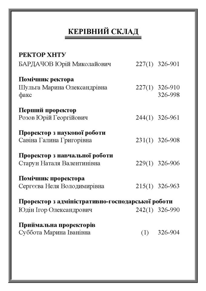 Телефонний довідник ХНТУ
