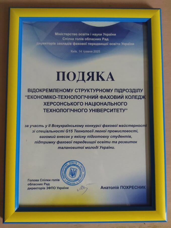 Відокремлений структурний підрозділ "Економіко-технологічний фаховий коледж Херсонського національного технічного університету"