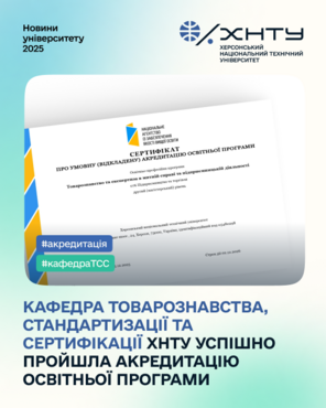 КАФЕДРА ТОВАРОЗНАВСТВА, СТАНДАРТИЗАЦІЇ ТА СЕРТИФІКАЦІЇ ХНТУ УСПІШНО ПРОЙШЛА АКРЕДИТАЦІЮ ОСВІТНЬОЇ ПРОГРАМИ