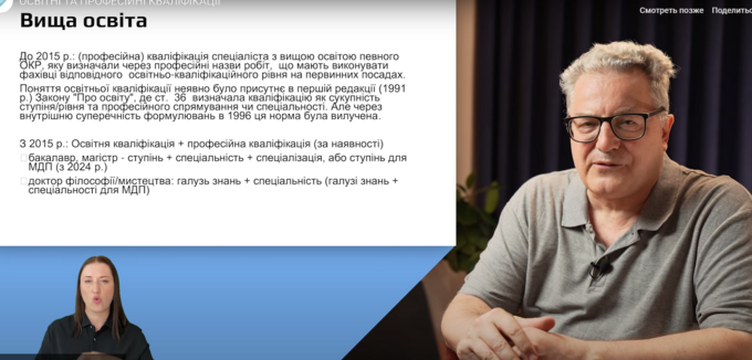 Олена Єременко, заступниця Голови Національного агентства із забезпечення якості вищої освіти та інші експерти з питань професійних стандартів, акредитації освітніх програм і розвитку системи кваліфікацій.