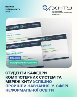 СТУДЕНТИ КАФЕДРИ КОМП’ЮТЕРНИХ СИСТЕМ ТА МЕРЕЖ ХНТУ УСПІШНО ПРОЙШЛИ НАВЧАННЯ У СФЕРІ НЕФОРМАЛЬНОЇ ОСВІТИ