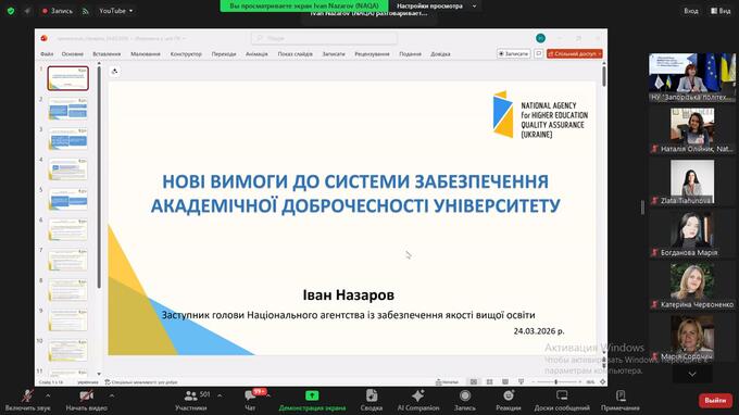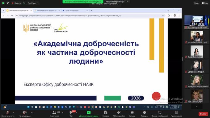До обговорення долучилися провідні фахівці у сфері вищої освіти та державного управління, які представили власне бачення розвитку академічної доброчесності в умовах сучасних трансформацій.