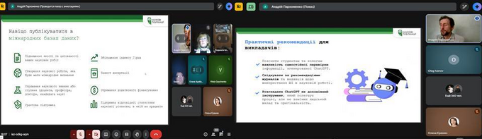 За підсумками вебінару надано практичні рекомендації для викладачів щодо використання штучного інтелекту у науковій роботі, впровадження новітніх інструментів у діяльність дослідників з метою підвищення якості наукових робіт, а учасники отримали сертифікати підвищення кваліфікації.