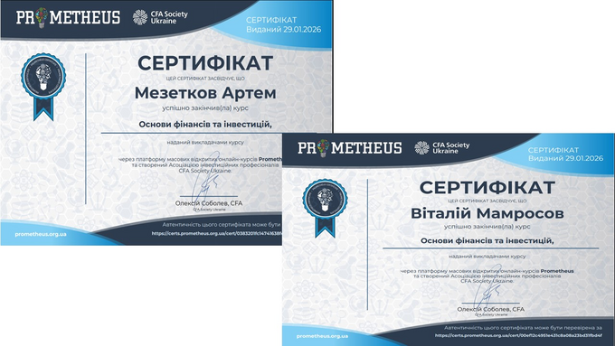Отримані іменні сертифікати підтверджують успішне завершення навчання і є офіційним свідченням набутих здобувачами знань та фахових компетентностей. Ці документи не лише доповнюють професійне портфоліо студентів, а й стають вагомою перевагою при працевлаштуванні, демонструючи роботодавцям високий рівень їхньої підготовки та ініціативності.