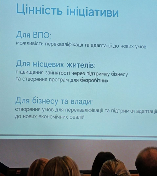 Захід об’єднав представників бізнесу, органів місцевого самоврядування, громадських організацій та, власне, внутрішньо переміщених осіб.