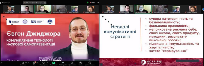 - «Комунікативні технології наукової самопрезентації; критичне осмислення основних прорахунків» (Євген ДЖИДЖОРА);