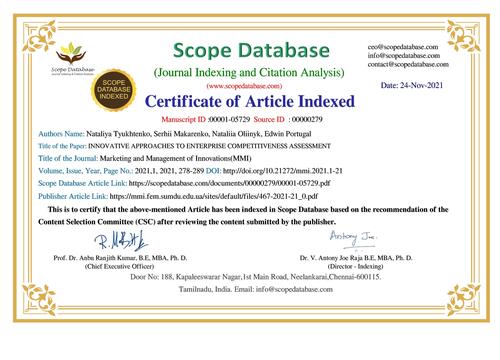 | Апробація результатів наукових досліджень у Web of Science. Certificate of Article Indexed. Date: 24-Nov-2021 |