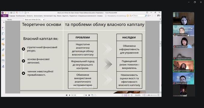 Доповідачами на засіданні виступили здобувачі 2 курсу другого (магістерського) рівня вищої освіти спеціальності 071 «Облік і оподаткування» Анна ЯРОШЕНКО, Анастасія КУЗЬМЕНКО та Крістіна ЗАМОТЄВСЬКА.