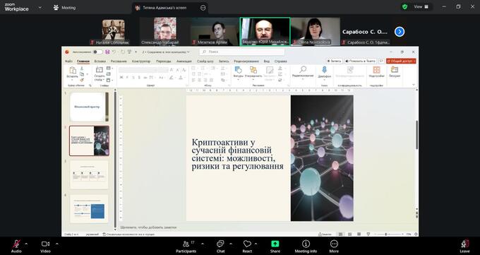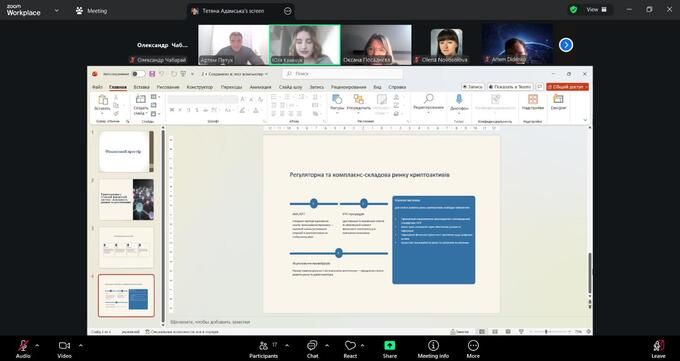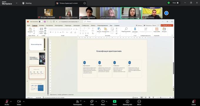 Особливу увагу було приділено теоретико-методичним аспектам класифікації криптоактивів (криптовалюти, токени, стейблкоїни, NFT) та відмінностям між криптоактивами як цифровими інструментами й традиційними фінансовими активами. Учасники розглянули, як формується вартість криптоактивів, які чинники впливають на ринкову динаміку, та чому управління ризиками є критично важливим для користувачів і фінансових інституцій.