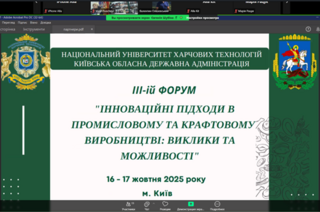 16 – 17 жовтня 2025 року викладачі кафедри хімічних технологій, експертизи та безпеки харчової продукції взяли участь у роботі ІІІ Форуму «Інноваційні підходи в промисловому та крафтовому виробництві: виклики та можливості», який відбувся в Національному університеті харчових технологій (м. Київ) у змішаному форматі.