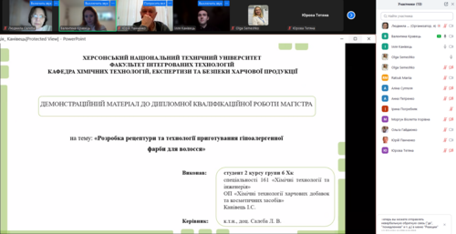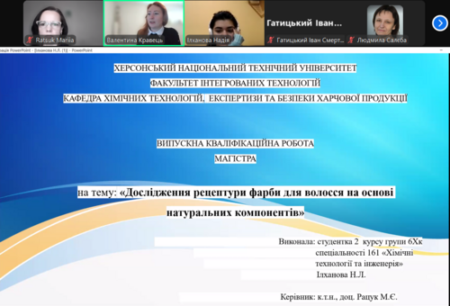 Структура / Кафедри університету / Хімічних технологій, експертизи та безпеки харчової продукції / Новини кафедри / Захист кваліфікаційних робіт магістрів ОПП «Хімічні технології харчових добавок та косметичних засобів» |
