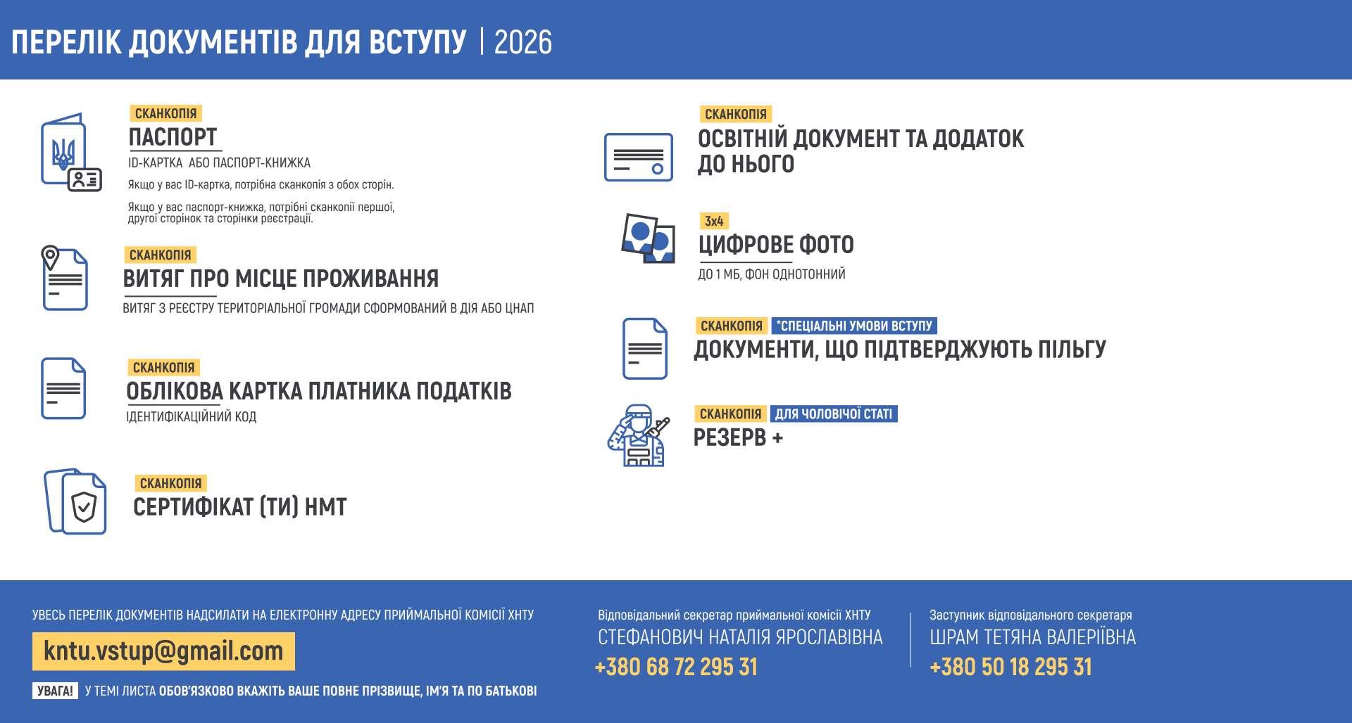 Вступнику / Інформація ВСТУПНИКУ / Програма та розклад вступних випробувань / Перелік документів
