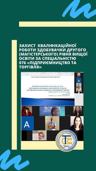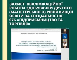 23 грудня 2025 року відбувся захист кваліфікаційної роботи здобувачки другого (магістерського) рівня вищої освіти за спеціальністю 076 «Підприємництво та торгівля», освітньою програмою «Товарознавство та експертиза в митній справі та підприємницькій діяльності»