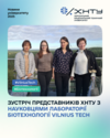 25 вересня 2025 р. в рамках навчального візиту делегації Херсонського національного технічного університету до Вільнюського технічного університету імені Гедимінаса (VILNIUS TECH) відбулася зустріч декана факультету інтегрованих технологій Марії Расторгуєвої, завідувача кафедри хімічних технологій, експертизи та безпеки харчової продукції Людмили Салєби з науковцями факультету фундаментальних наук, лабораторії молекулярної біотехнології доценткою Рутою Грушкене (Rūta Gruškienė) і молодшим науковим співробітником Айсте Галінскайте (Aistė Galinskaitė). |