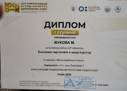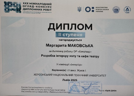Роботи випускників кафедри дизайну прийняли участь у конкурсі в декількох номінаціях: Дизайн інтер’єру та Мультимедійний дизайн. Всі роботи були нагороджені призовими місцями 1 та 2 ступеню.