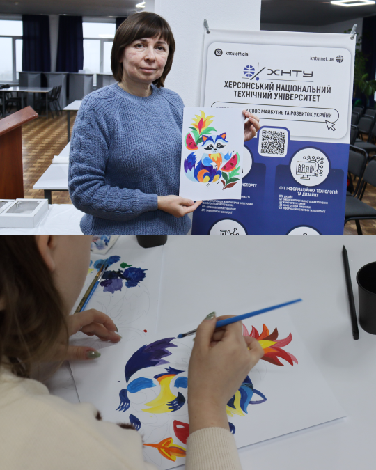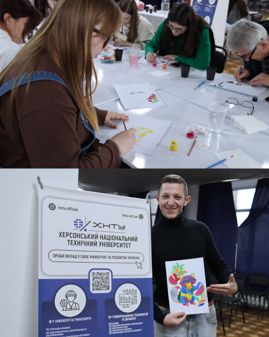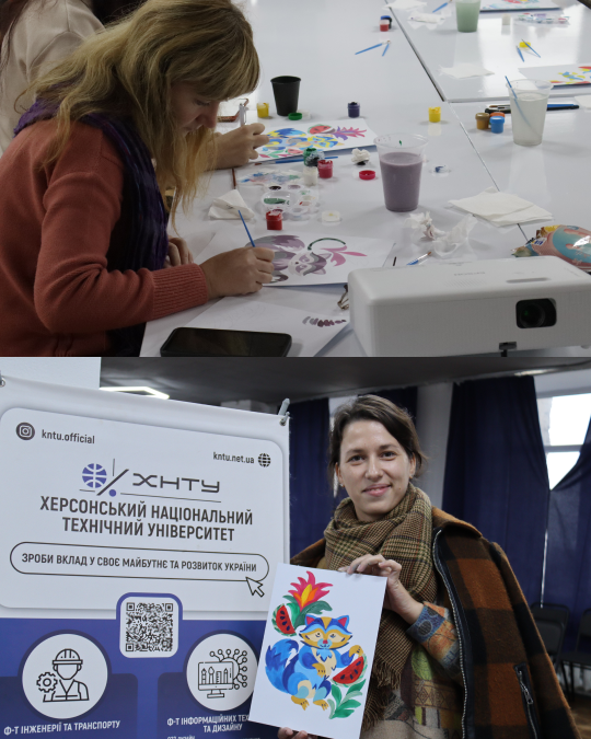 У затишній атмосфері, де панували аромати теплого чаю, спокійна релакс-музика та щирі усмішки, зібралися співробітники університету, студенти та внутрішньо переміщені особи з Херсонщини. Організатори розповіли історію Самчиківського розпису та в чому полягає його унікальність для української культури. Учасникам майстер-класу було запропоновано намалювати «херсонського єнотика», який в останні роки став неофіційним персонажем-символом ХНТУ в техніці самчиківського розпису.