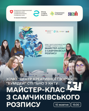 10 жовтня 2025 року відбулася друга частина соціо-терапевтичного заходу для членів спільноти ХНТУ, що об’єднує внутрішньо переміщених осіб із Херсонщини, родини ветеранів та місцеву молодь. Організатором події виступила Херсонська обласна молодіжна організація «Центр креативної творчості БУМІДЕЙ». Захід проведено за грантової підтримки ГО «Центр стратегічних ініціатив» у межах проєкту «Скарбничка переможців», який реалізується в рамках програми «Спроможні та сильні», що впроваджується Фондом Східна Європа за підтримки Швейцарії.