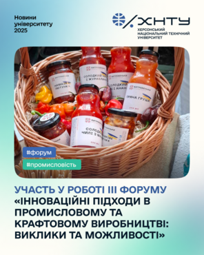 16 – 17 жовтня 2025 року викладачі кафедри хімічних технологій, експертизи та безпеки харчової продукції взяли участь у роботі ІІІ Форуму «Інноваційні підходи в промисловому та крафтовому виробництві: виклики та можливості», який відбувся в Національному університеті харчових технологій (м. Київ) у змішаному форматі.