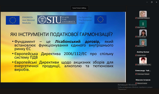 Під час лекції було висвітлено ключові аспекти гармонізації податкових систем у країнах Європейського Союзу, сучасні тенденції розвитку податкової політики та виклики, з якими стикаються держави у процесі євроінтеграції.