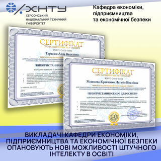 18 березня 2026 року Академією цифрового розвитку та командою Cloudfresh було організовано та проведено онлайн-тренінг «Використання Gemini для освітян», участь в якому взяли і викладачі кафедри Економіки, підприємництва та економічної безпеки ХНТУ доцент Алла Тарасюк і старший викладач Наталія Мєшкова-Кравченко. Метою тренінгу було комплексне підвищення рівня інформаційно-цифрової компетентності педагогічних та науково-педагогічних працівників шляхом опанування інноваційної екосистеми генеративного штучного інтелекту Gemini.